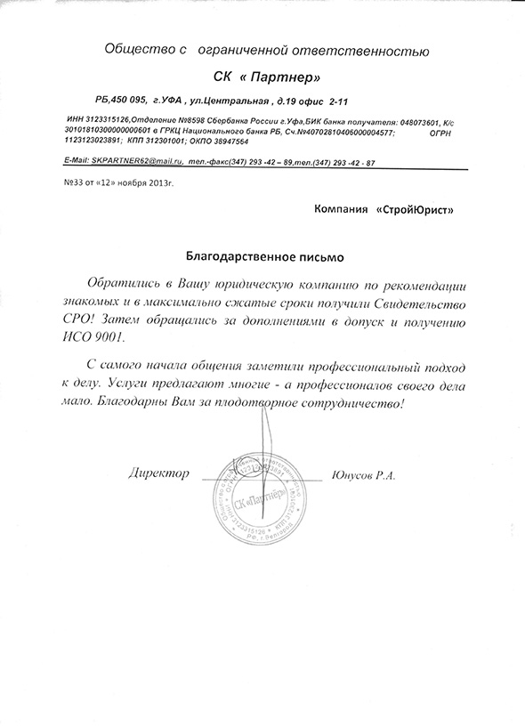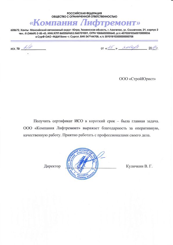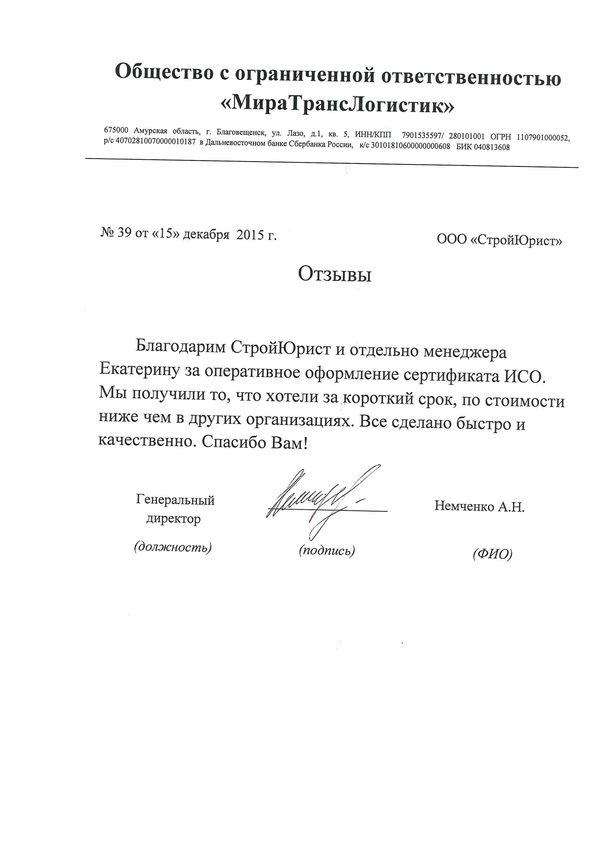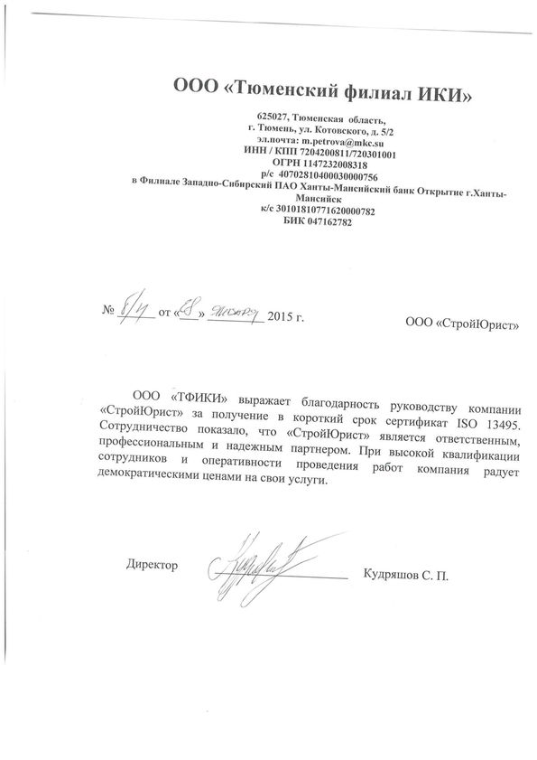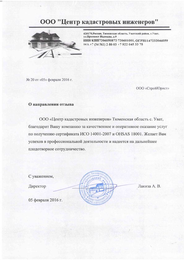 Отзывы клиентов "СтройЮрист" по ISO в Первоуральске