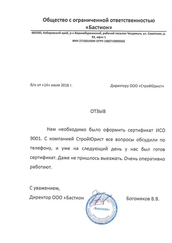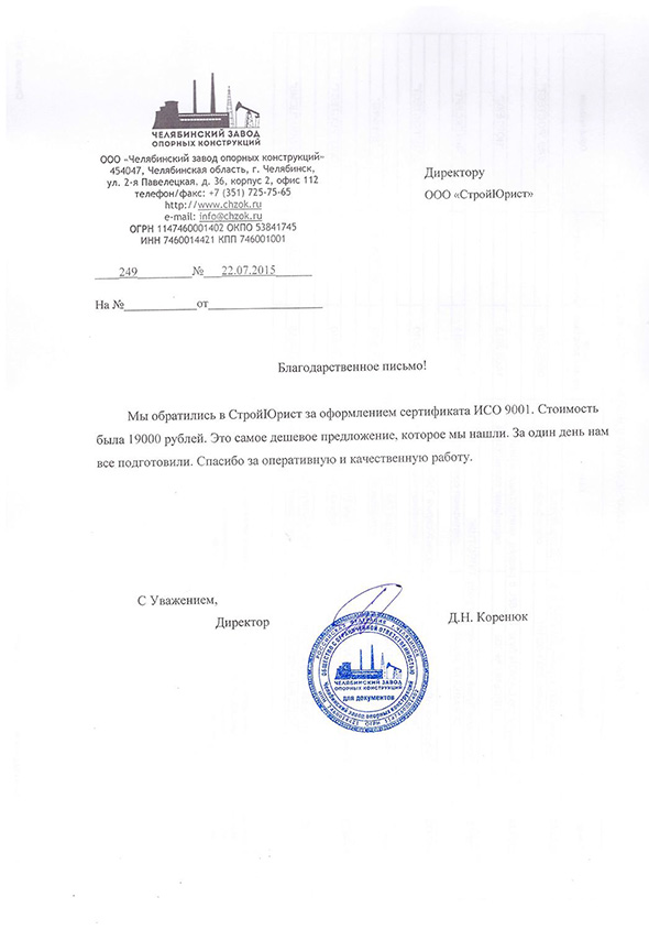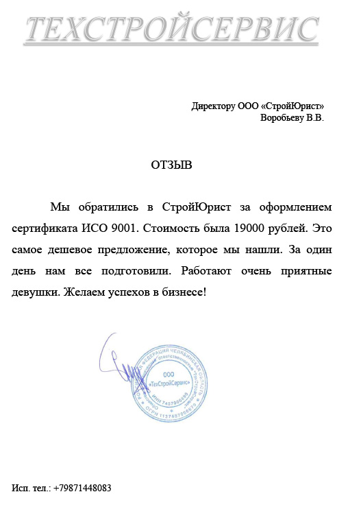 Отзывы клиентов "СтройЮрист" по ISO в Первоуральске