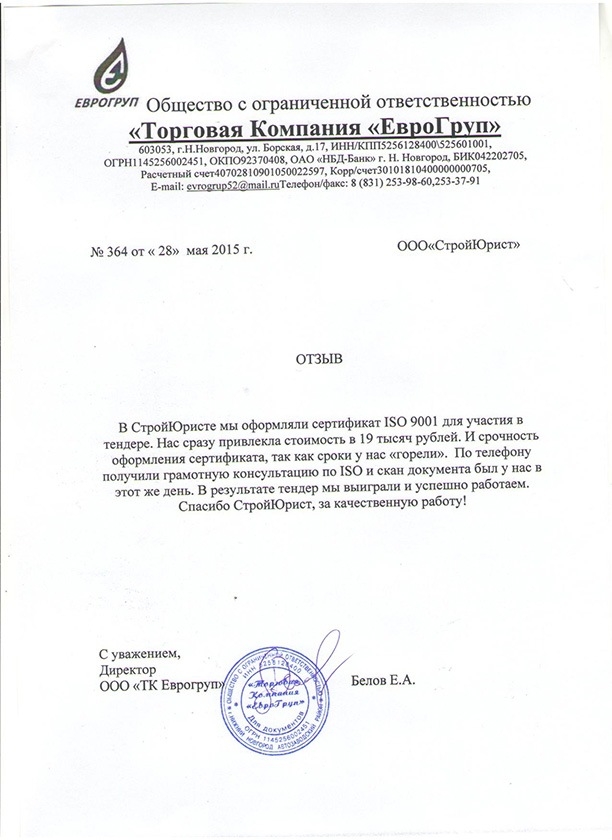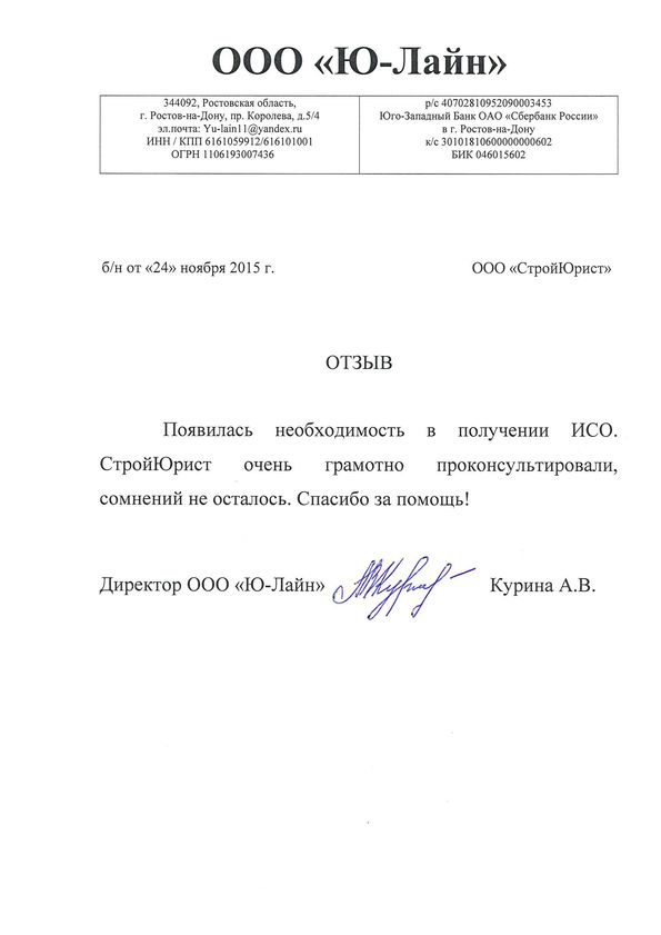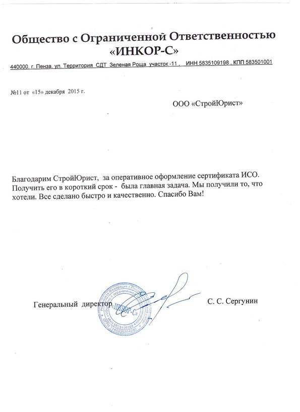 Отзывы клиентов "СтройЮрист" по ISO в Первоуральске