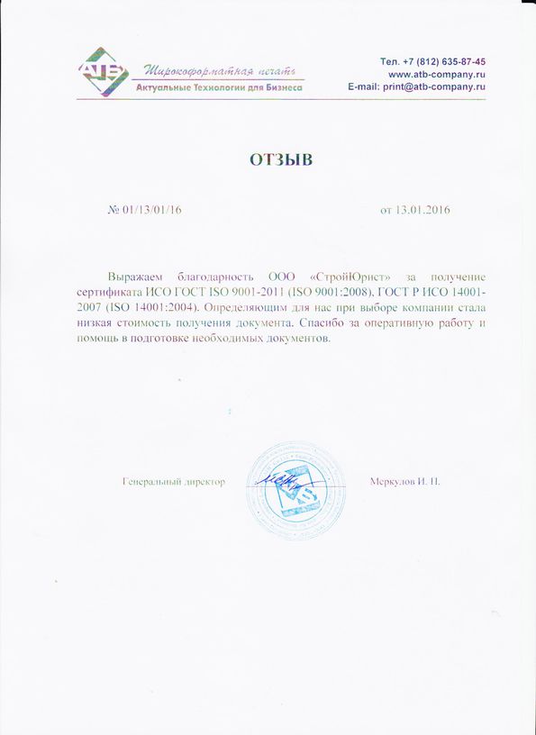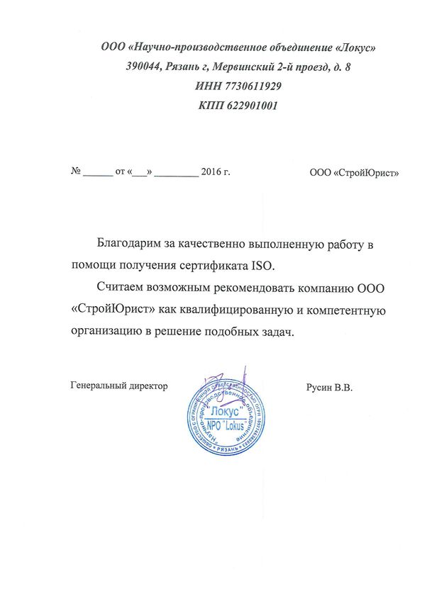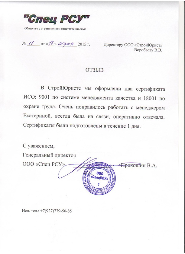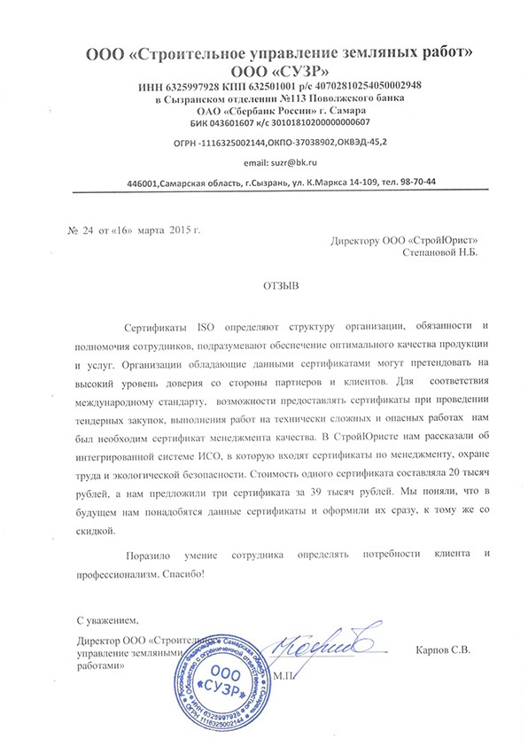 Отзывы клиентов "СтройЮрист" по ISO в Первоуральске
