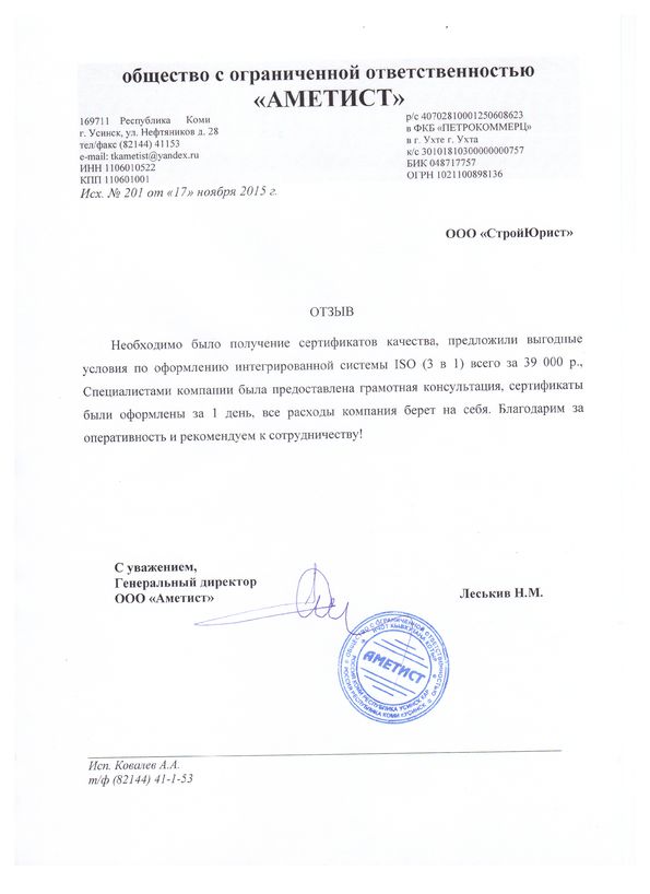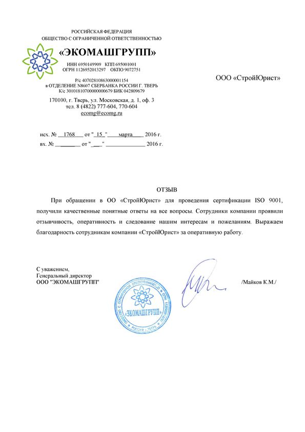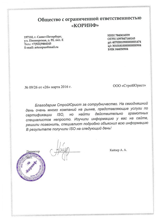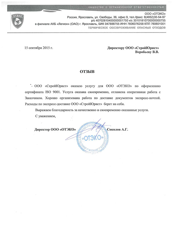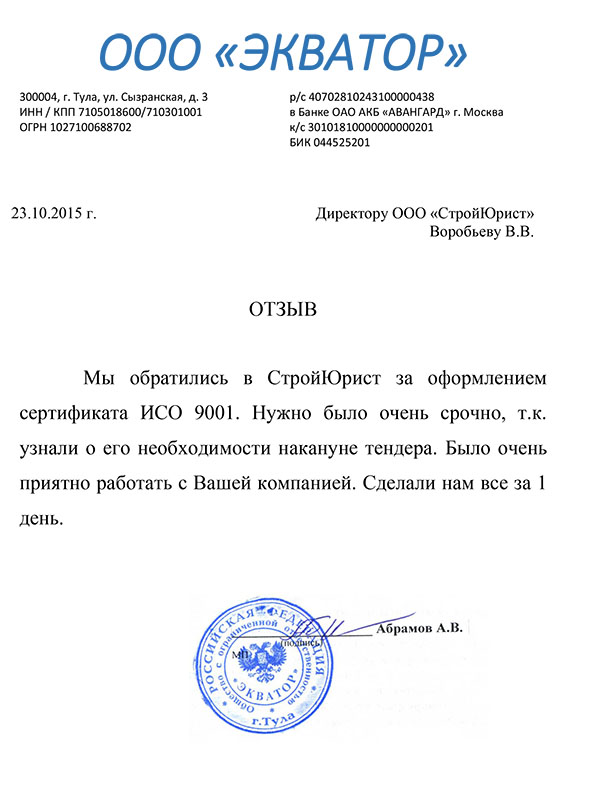 Отзывы клиентов "СтройЮрист" по ISO в Первоуральске