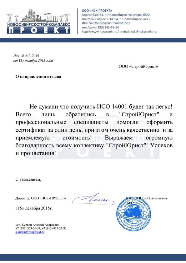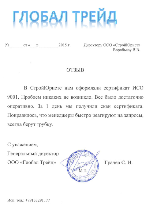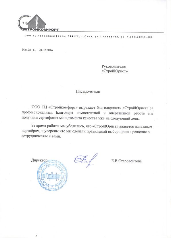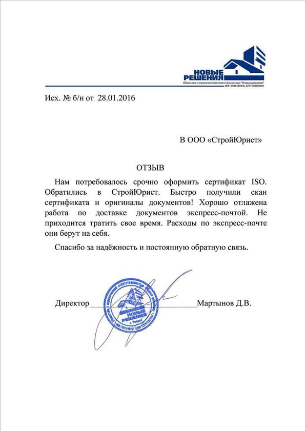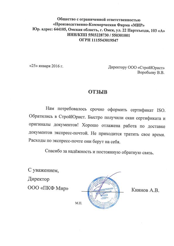 Отзывы клиентов "СтройЮрист" по ISO в Первоуральске