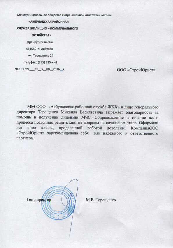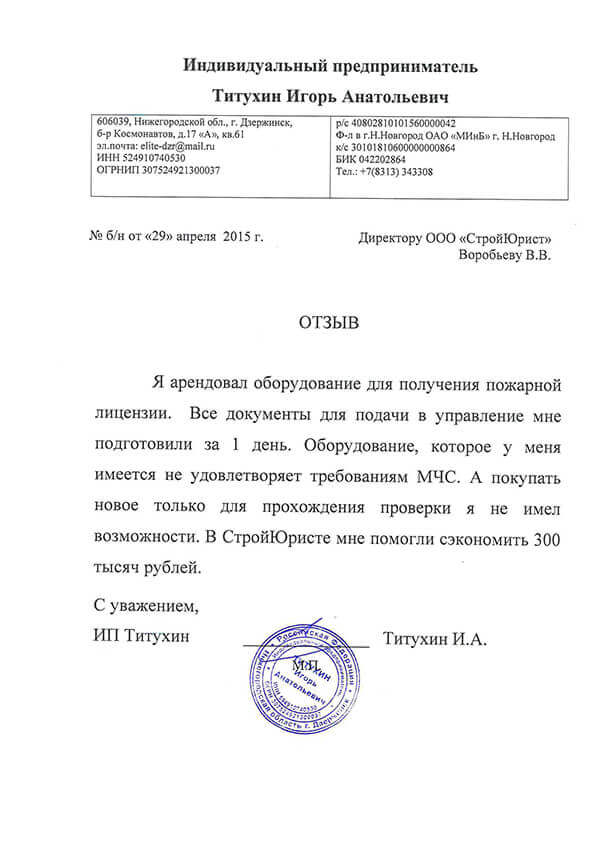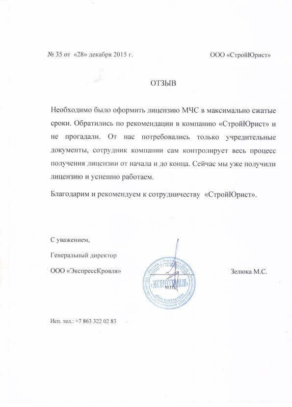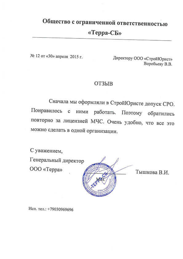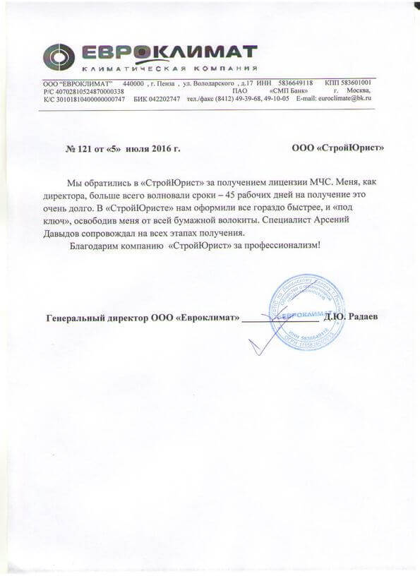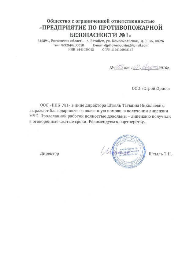 Отзывы клиентов "СтройЮрист" по лицензированию МЧС в Первоуральске