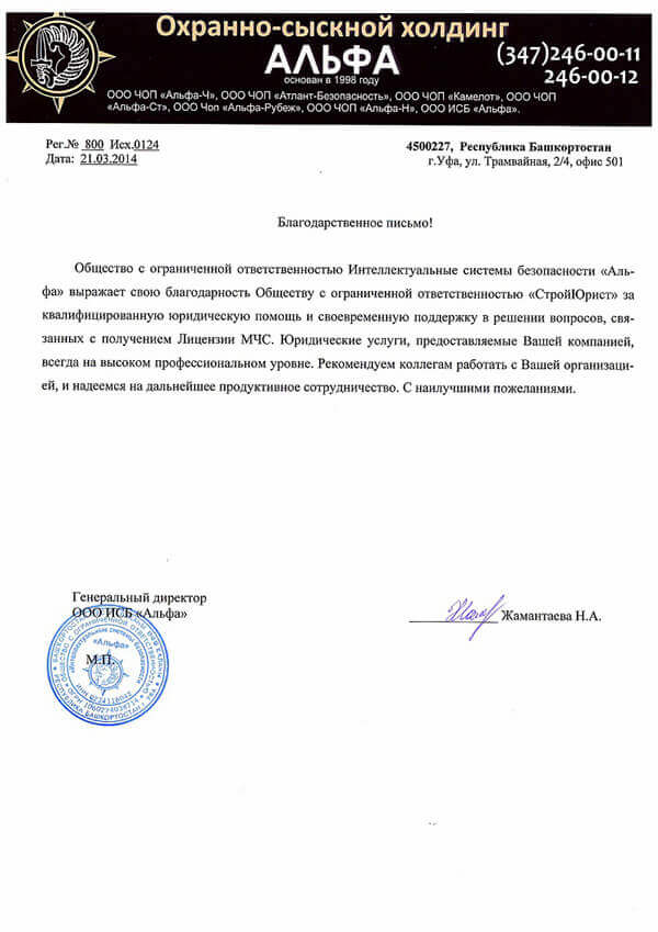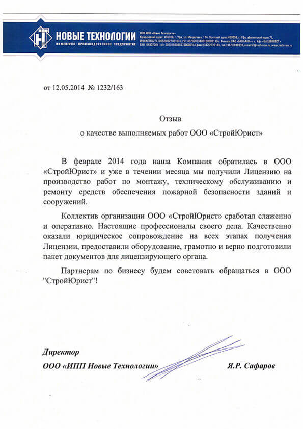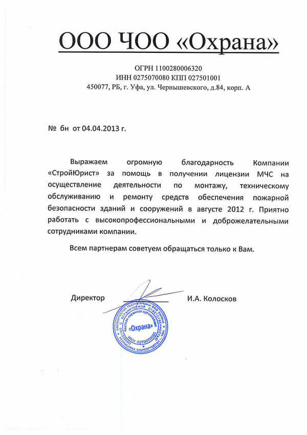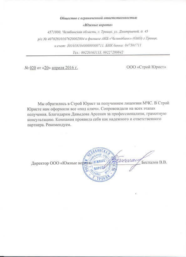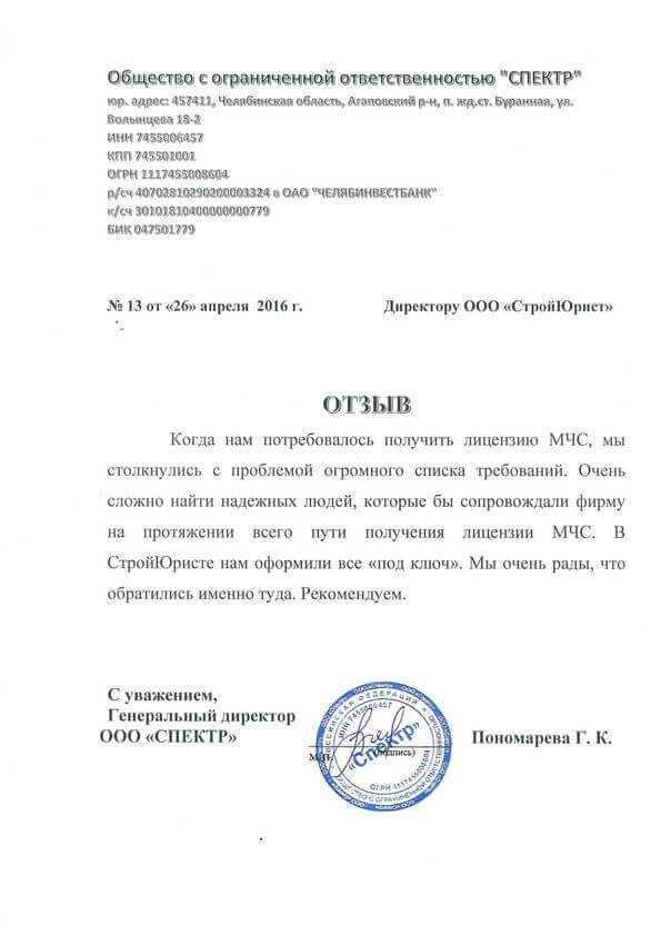 Отзывы клиентов "СтройЮрист" по лицензированию МЧС в Первоуральске