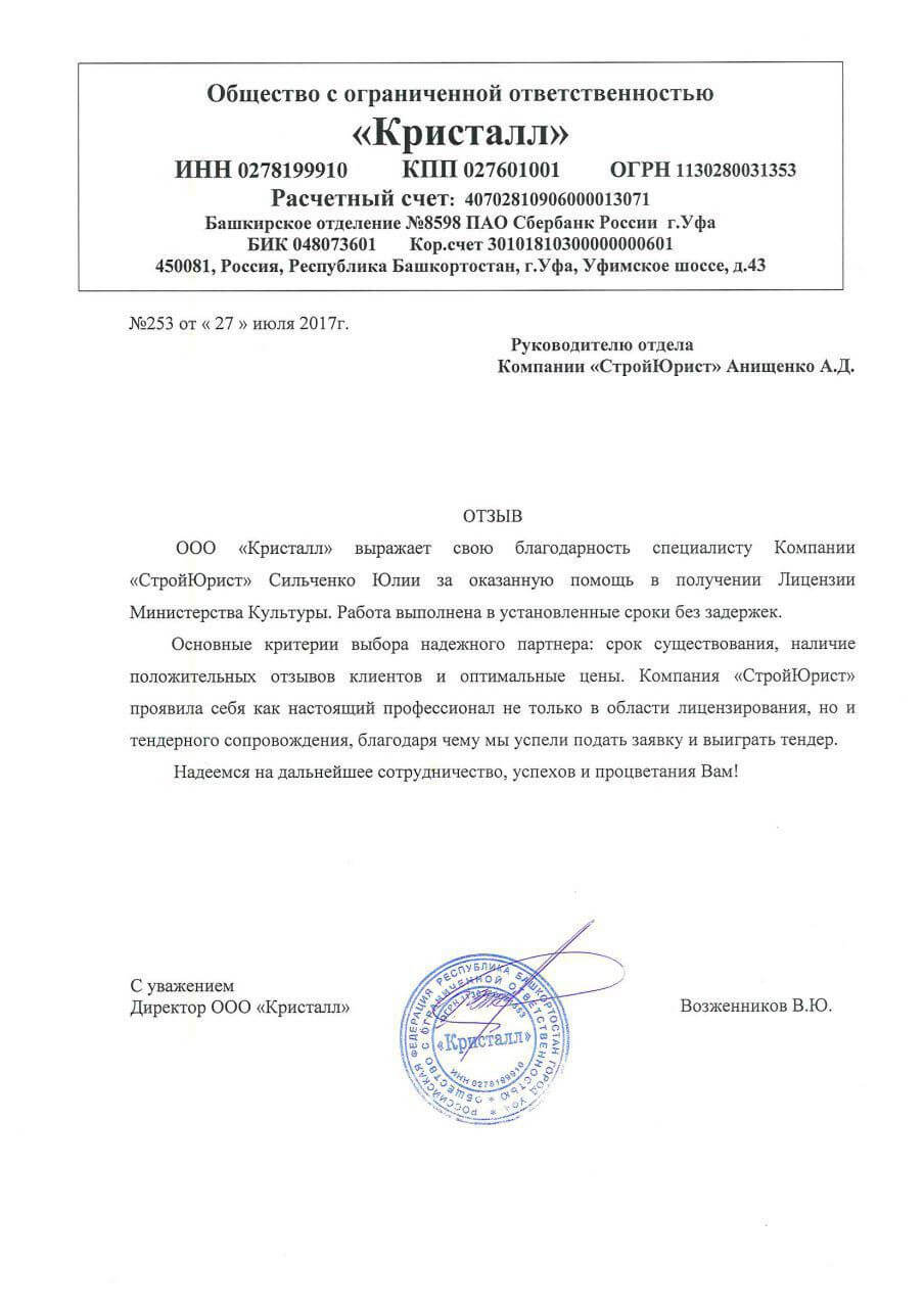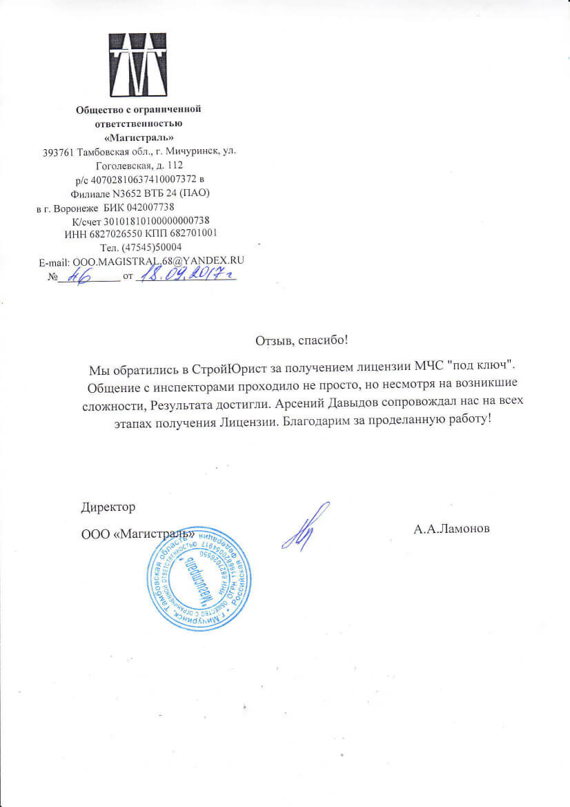 Отзывы клиентов "СтройЮрист" по лицензированию МЧС в Первоуральске