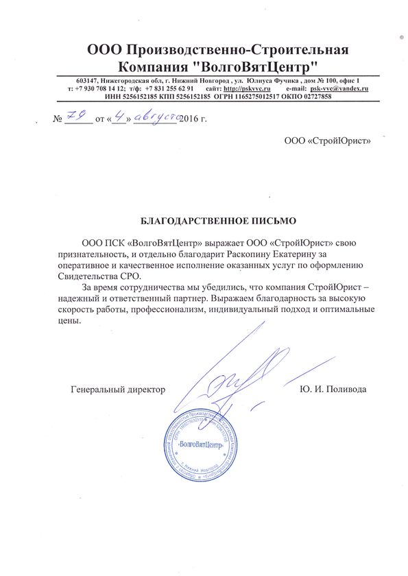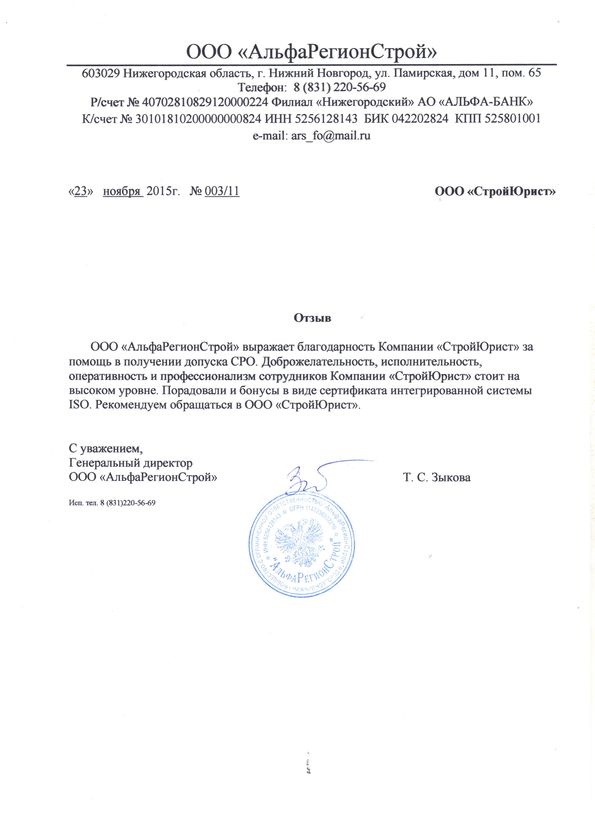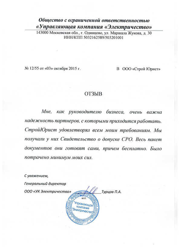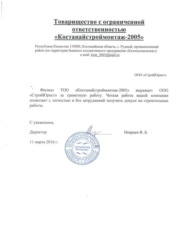 Отзывы клиентов "СтройЮрист" по вступлению в СРО в Первоуральске