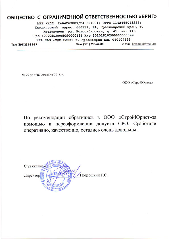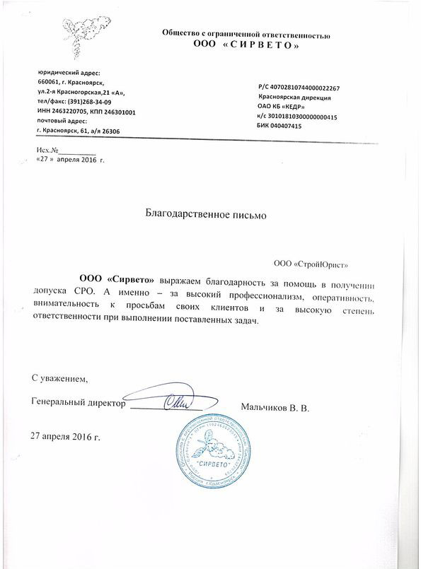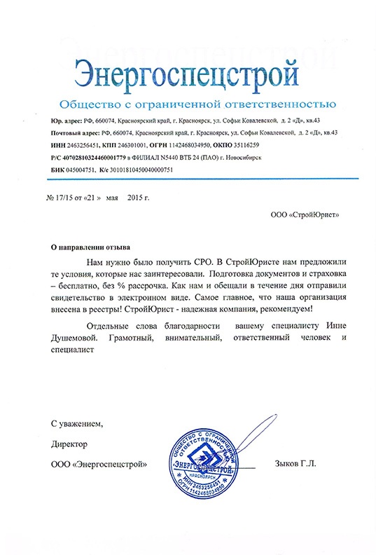 Отзывы клиентов "СтройЮрист" по вступлению в СРО в Первоуральске
