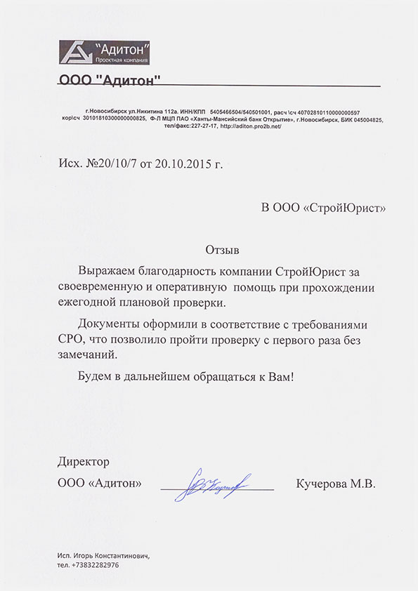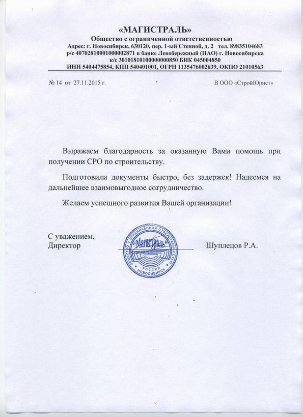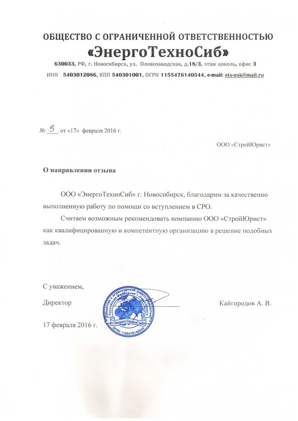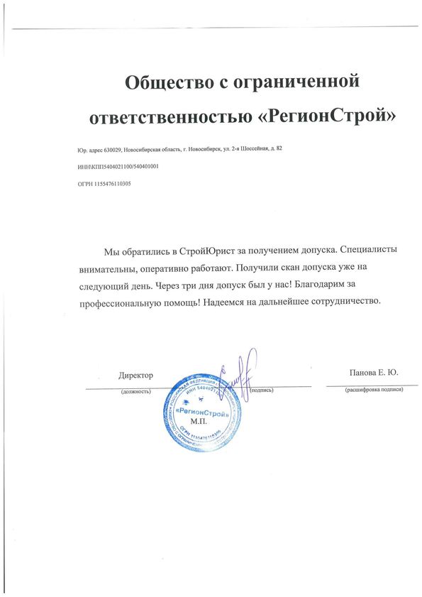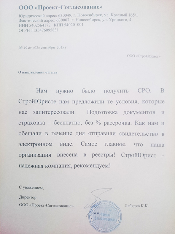 Отзывы клиентов "СтройЮрист" по вступлению в СРО в Первоуральске