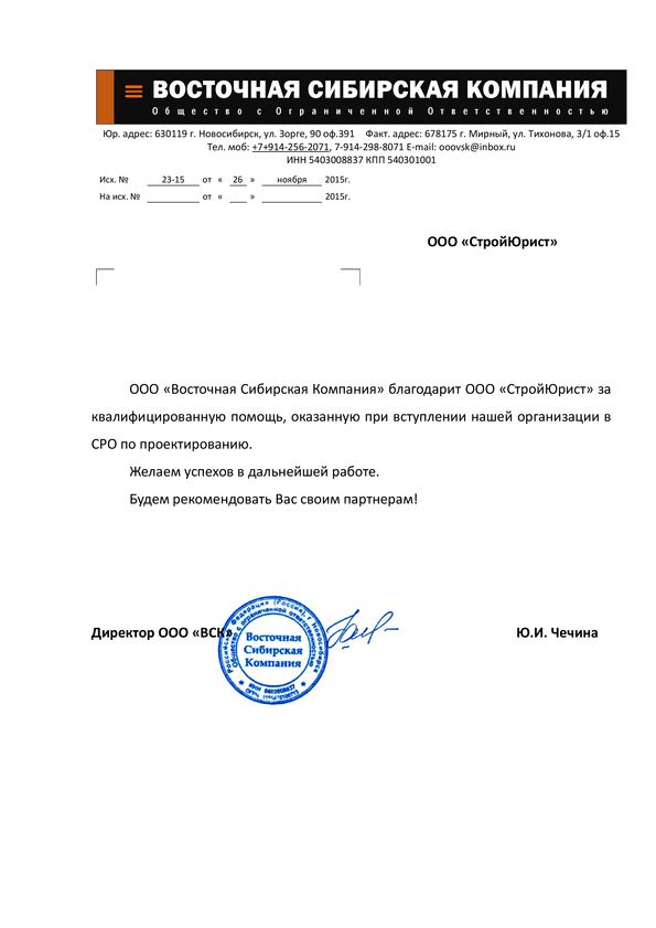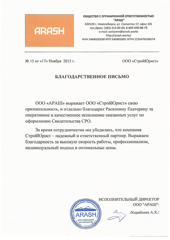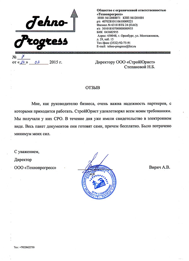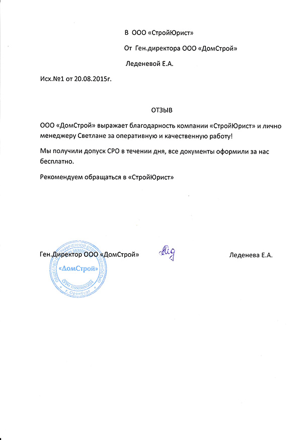Отзывы клиентов "СтройЮрист" по вступлению в СРО в Первоуральске