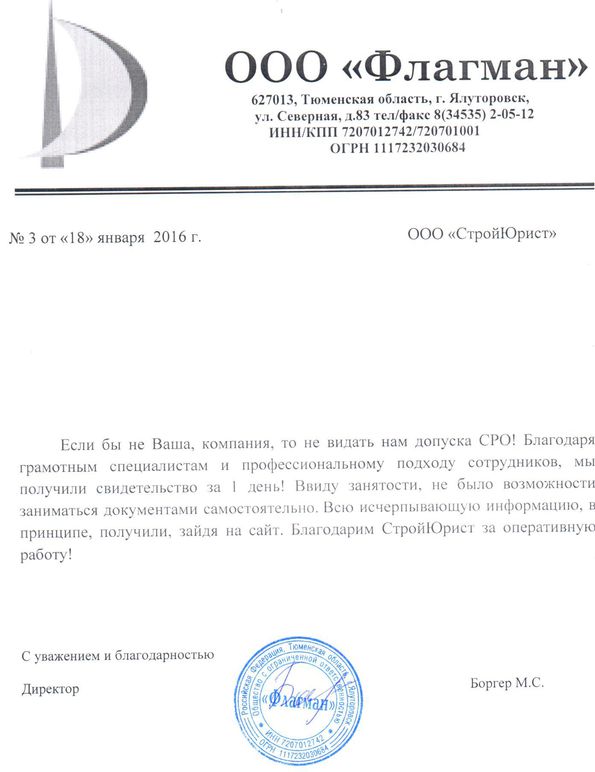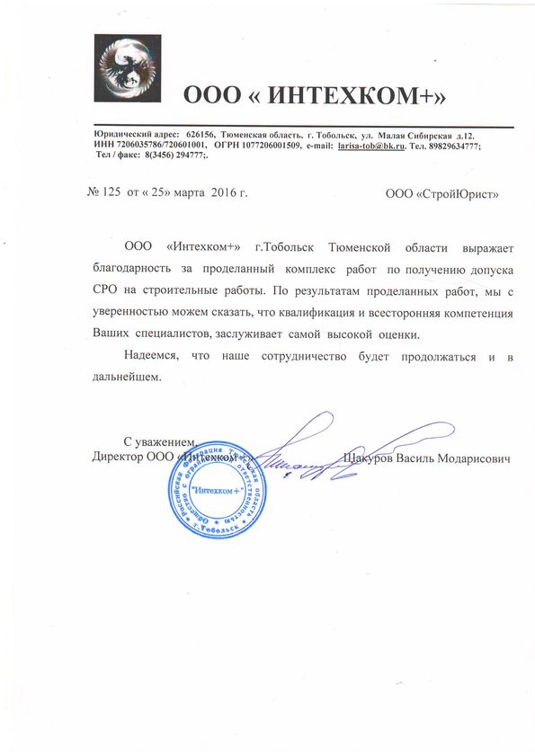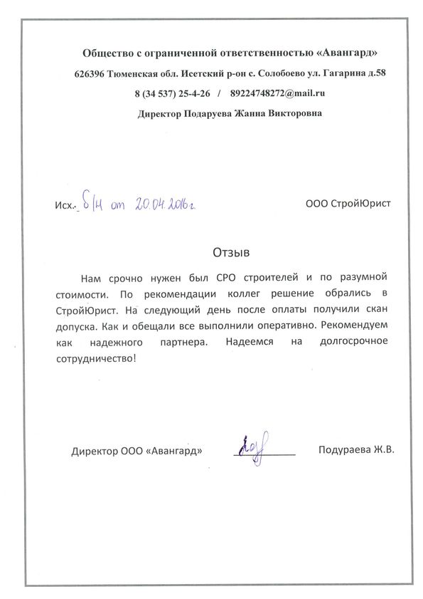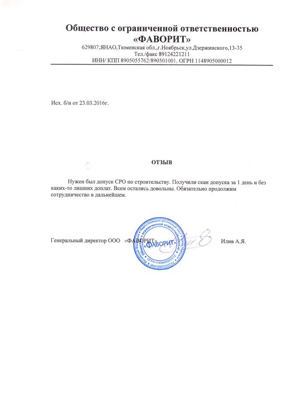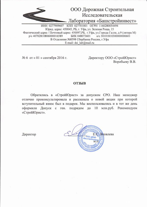 Отзывы клиентов "СтройЮрист" по вступлению в СРО в Первоуральске