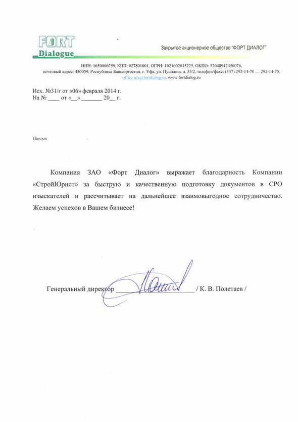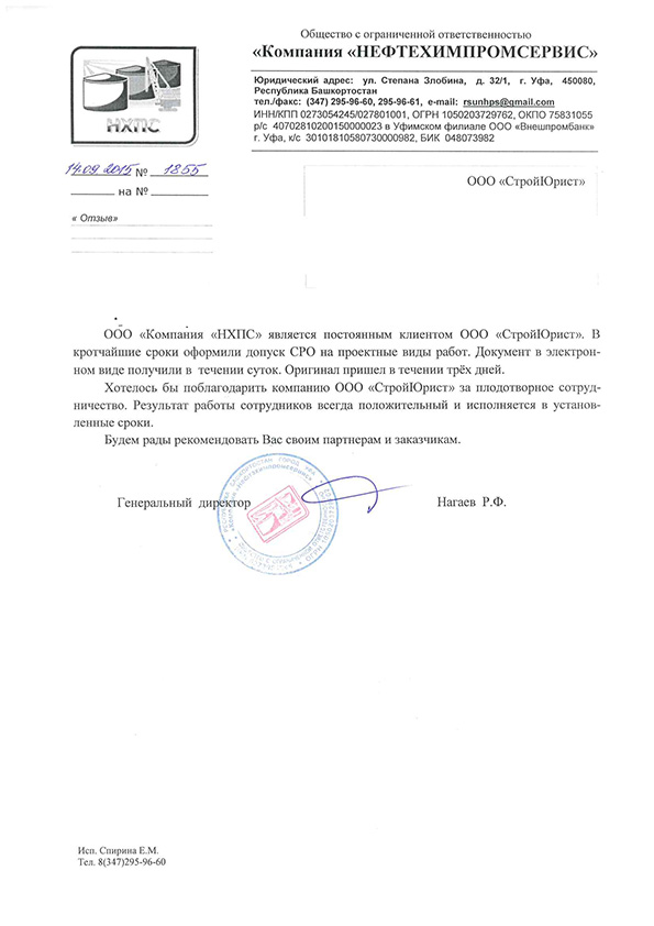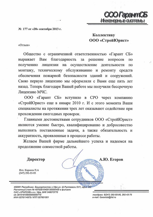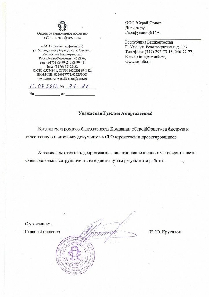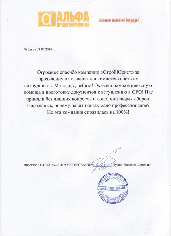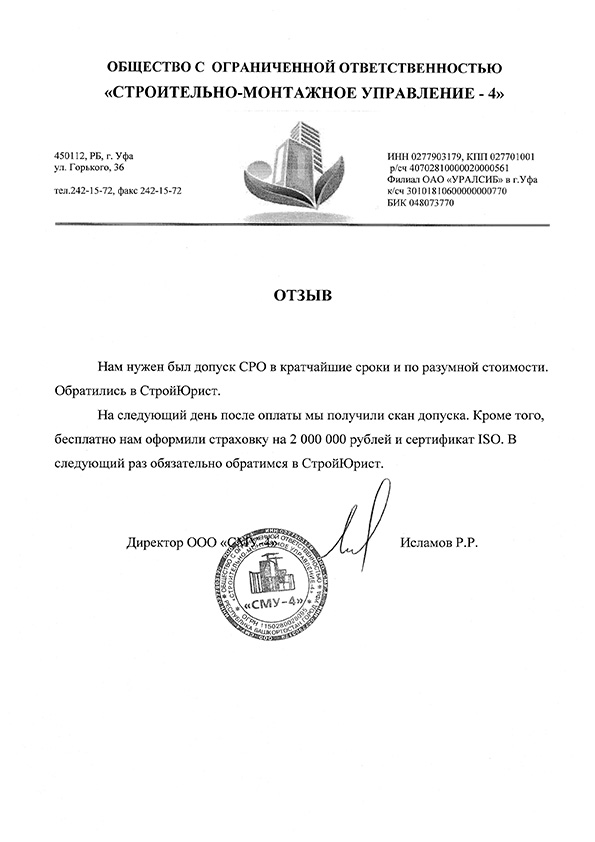 Отзывы клиентов "СтройЮрист" по вступлению в СРО в Первоуральске