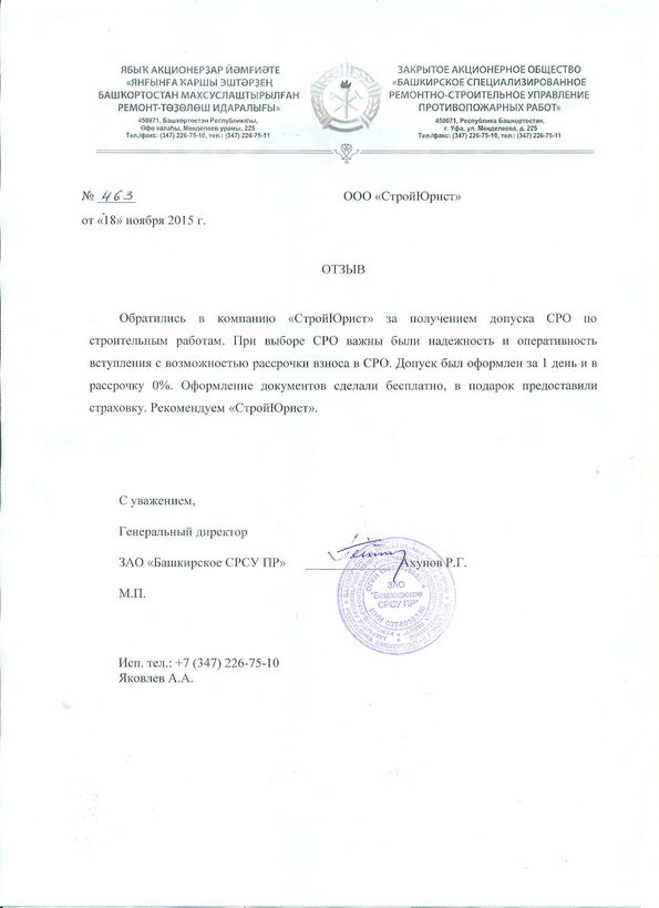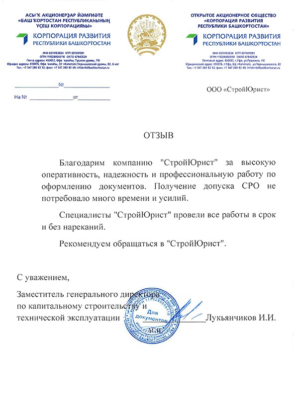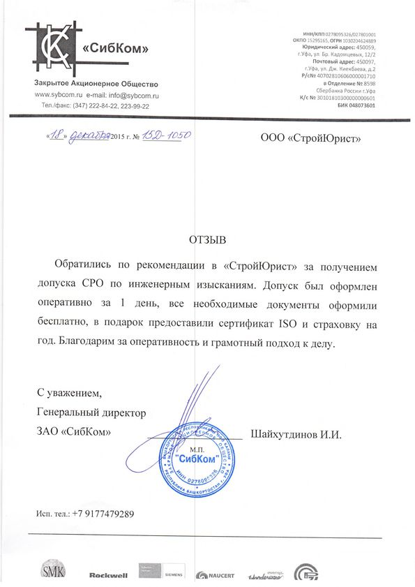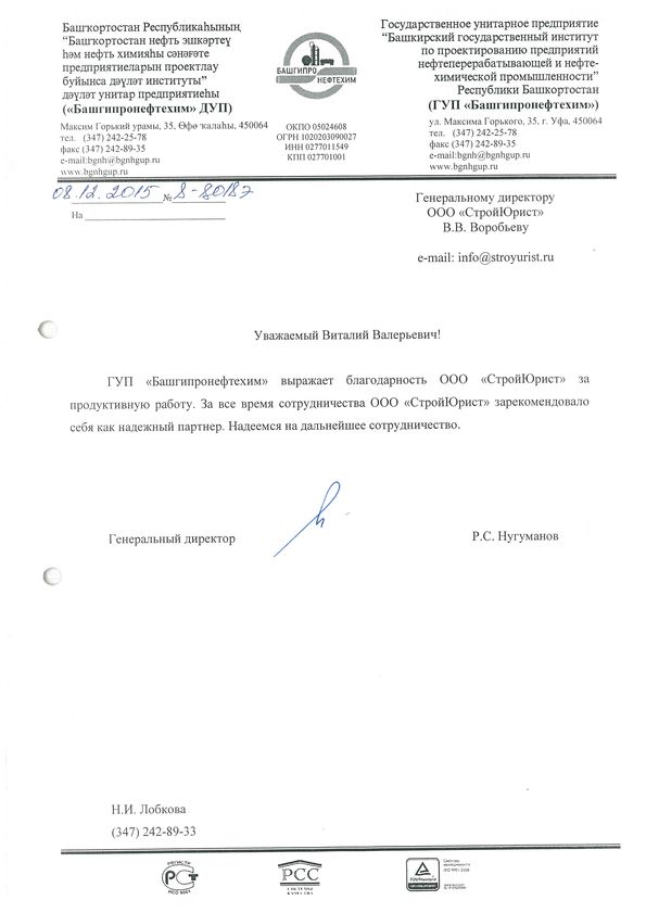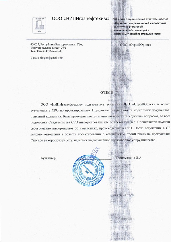 Отзывы клиентов "СтройЮрист" по вступлению в СРО в Первоуральске
