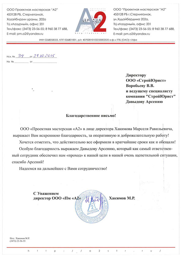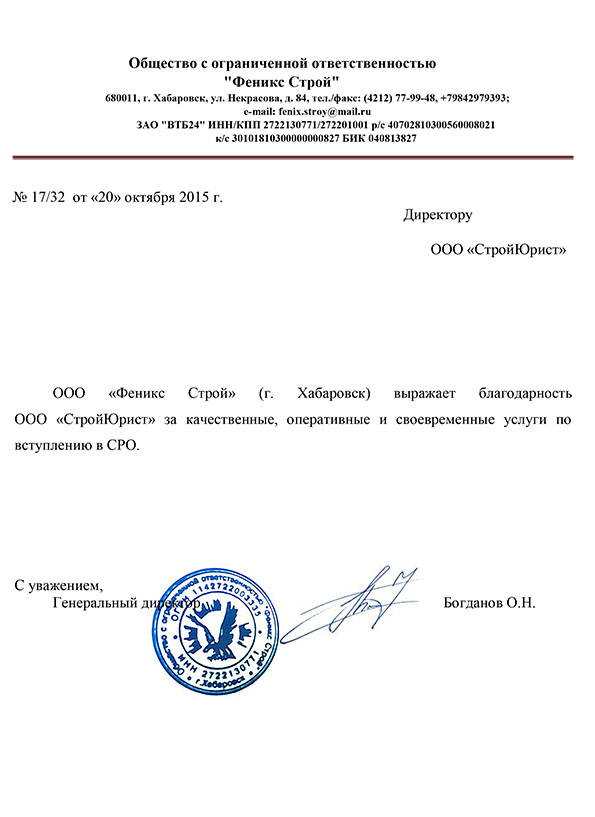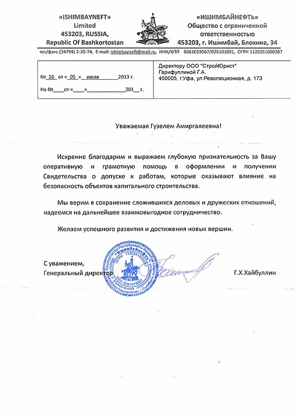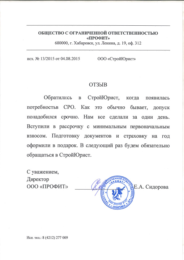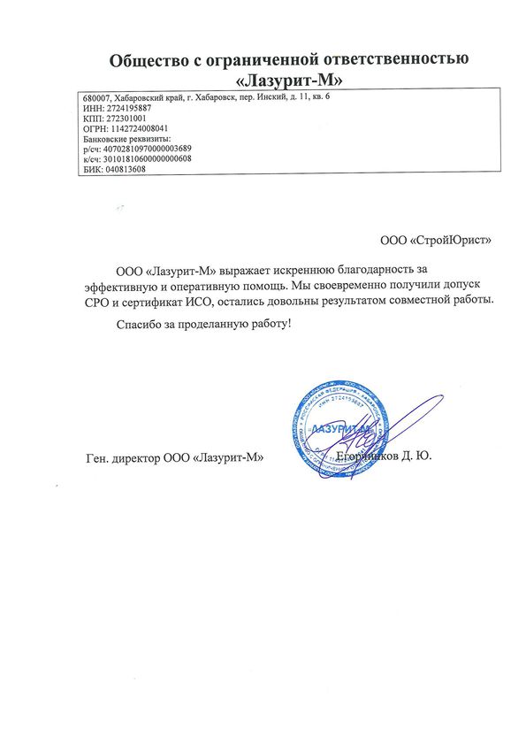 Отзывы клиентов "СтройЮрист" по вступлению в СРО в Первоуральске