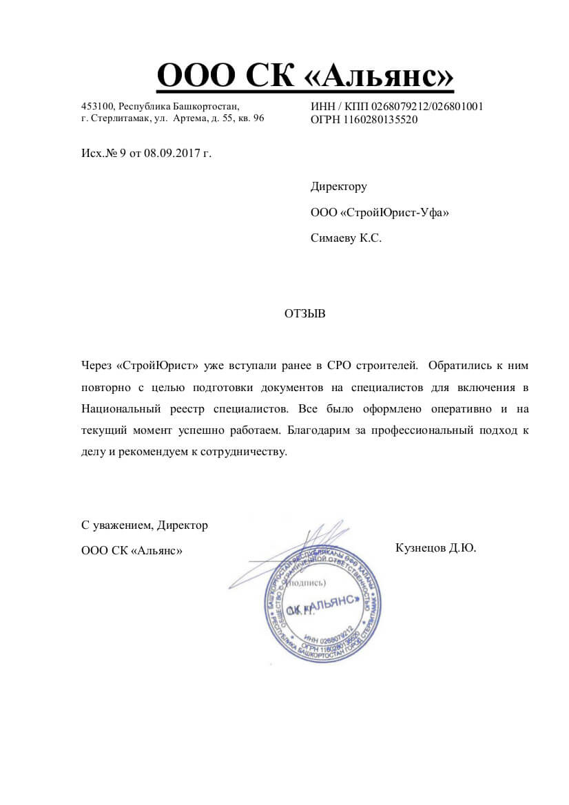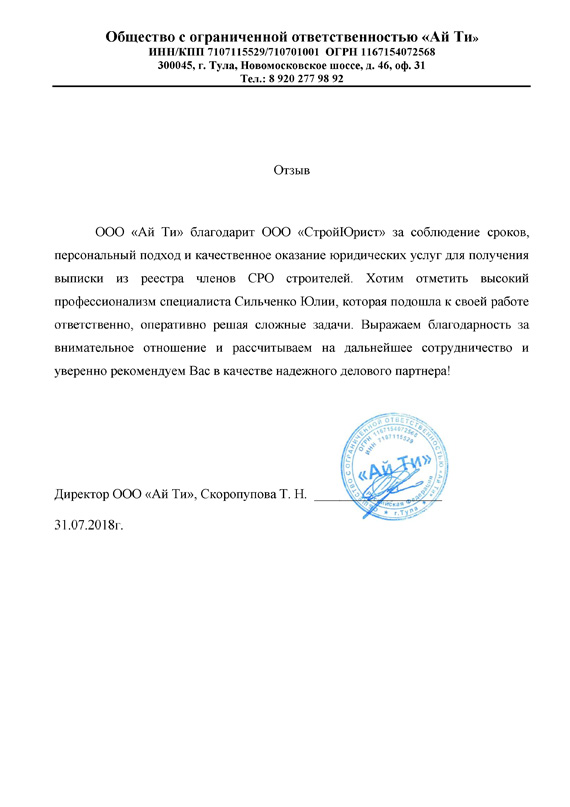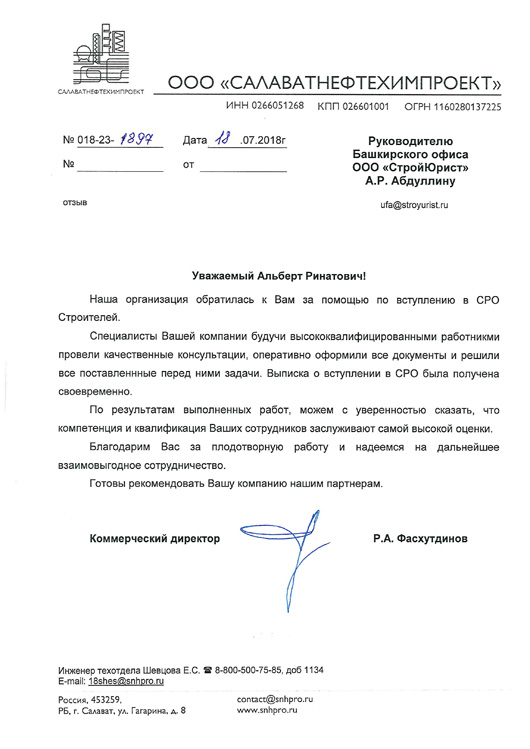 Отзывы клиентов "СтройЮрист" по вступлению в СРО в Первоуральске