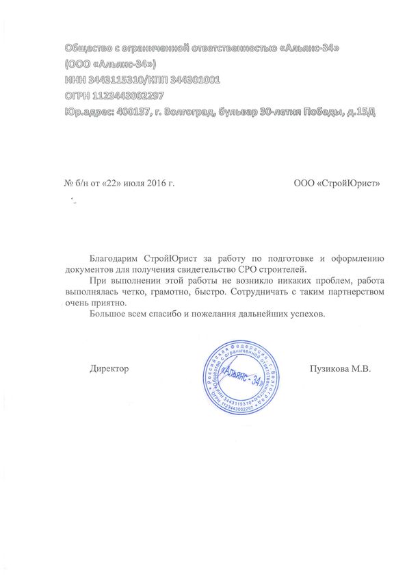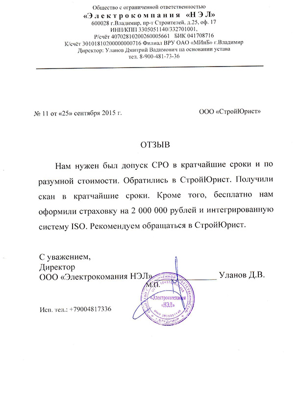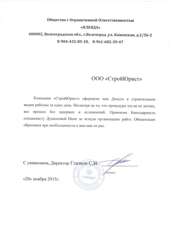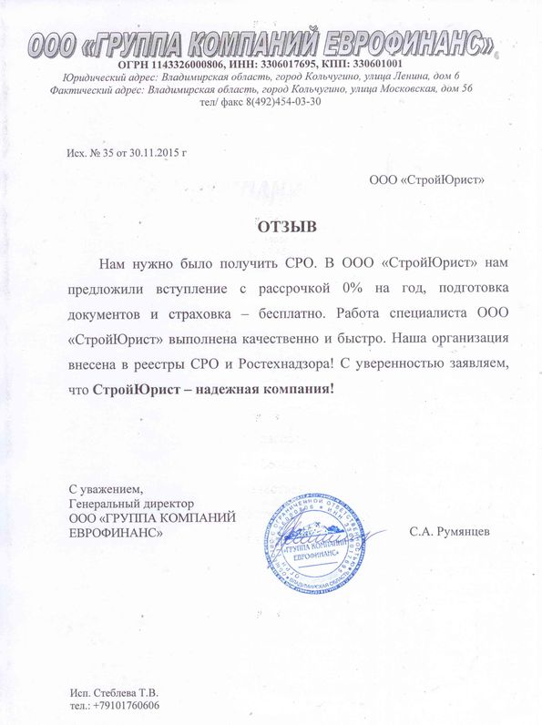 Отзывы клиентов "СтройЮрист" по вступлению в СРО в Первоуральске